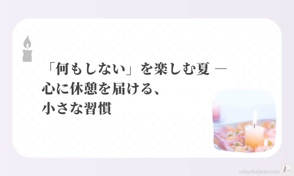 暑さと忙しさに疲れたときこそ、心に“休憩”を届けませんか?帰宅後や休日のひとときに、「なにもしない時間」を味わうための小さな習慣をご紹介します。
